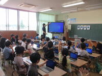 前期後半から、1年生もタブレットPCの使い方に慣れる学習をスタートさせています。個人に貸し出された端末からログインしていきますが、自分の名前と「ようこそ」の文字が出るだけで、子どもたちは大興奮でした。ICT支援員から「お絵かきソフト」を開く場所を教えてもらい、そのソフトが起動すると、さらに歓声が上がっていました。使い方に苦戦するだろうと思いながら見ていましたが、初めて使う「お絵かきソフト」を上手に使っていることに驚きました。絵具の筆を使って絵を描くタブもありましたが、自分たちで操作し、色を混ぜながら作って描いている子もいて、私の方が勉強になりました。現在でもそうですが、これからタブレットPCは、主体的に学習を進めていくうえでの重要な教具となっていきます。使い方にしっかり慣れるとともに、使い方のルールをしっかりと守り、有意義に使えるようになってほしいと願っています。