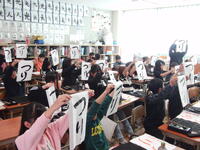 1年間で2回、3年生の書写の時間に外部から講師をお招きし、毛筆の指導していただいています。本校の先生方もしっかりと教材研究をして指導に当たっていますが、習字を書く時の心構えや準備の仕方、文字の成り立ち、字形の整え方等、専門的な見地から教えていただくことで、子どもたちもぐんと力を伸ばしてくれます。少しでも子どもたちが毛筆に興味をもち、上達を実感できるように、様々な準備をしていただいています。その中で、一人一人の名前を入れた手本を書いてこられ、子どもたちに配布されます。本当にありがたく感じるとともに、本校の子どもたちを思う愛情が伝わってきます。この思いを受け取り、さらに毛筆の力を伸ばしてくれることを期待しています。講師の先生、ありがとうございます。