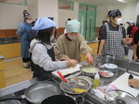 6年生が家庭科で地域のボランティアの方々と調理実習を行うということで、様子を見に行きました。ベーコンポテトづくりに挑戦していましたが、地域の方のアドバイスを聞きながら、手際よく調理を進めていました。地域の方から、「校長先生は、においをかいできたんでしょ。」と声をかけられてしまいました。それぞれのグループの作業を見て回っていると、「料理が大好きです。家でもよく作っています。」という子どもたちがいて、素晴らしいと感じました。また、その言葉を聞きながら、昨年度教育講演会でご講話いただいた「はなちゃんのみそ汁」で有名な安武信吾さんの話を思い出しました。子どもたちの力作を食べさせてもらいましたが、塩味がちょうどよく、大変おいしくいただきました。子どもたちが安全に調理できるよう協力いただいた地域の方々、本当にありがとうございました。
