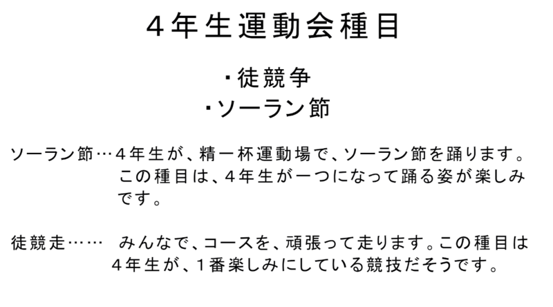 情報委員会が運動会に向けて各学年の種目を紹介します。
