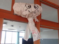 1年生の教室前を通りかかると、子どもたちが「松ぼっくりツリー」づくりを行っていました。残念ながら授業が終わる前だったので、後片付けをしている最中でした。何人かの子どもたちの作品が机の上に置いてあったので、見せてもらいました。松ぼっくりの先の方に色とりどりの細かな飾りを貼り付けていて、とてもかわいいツリーを作っていたので驚きました。中には大きな松ぼっくりを持ってきていた子もいたようで、その大きさに驚きました。気が付くと1年生の子どもたちが次々と集まってきて、自分の作った松ぼっくりツリーを見せながら、頑張ったところを紹介してくれました。どの作品も子どもたちらしさが伝わってきて、「すごいね。よく作れたね。」と声をかけをかけると、みんな嬉しそうな顔を見せてくれました。どれも素晴らしいツリーでしたので、家でも飾っていただけるとありがたいです。