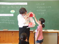 後期前半最後の研究授業が1年生で行われ、国語の授業を全職員で参観し、授業づくりについて学び合いました。主人公になり切って音読するために、行動や言葉に着目して読みを深めていく授業でした。5時間目の授業でしたが、1年生が楽しそうに授業に臨んでいる姿が印象的でした。場面の様子を想像し、どんな風に読んだら主人公の気持ちを表現できるかを子どもたちなりに一生懸命考え、友達同士でアドバイスをしながら読みを深めていました。場面で登場する丘の上の木を想定して作られた教具の上で発表した子どもたちは、自信をもって表現してくれました。授業中の子どもたちの態度を見ながら、とても成長してくれていることを感じました。講師の先生からも、子どもたちの学びに向かう姿勢をたくさん褒めていただきました。また、さらによりよい国語科の授業となるための助言もいただきました。授業の中で、子どもたちがさらに光かがやく姿を見せてくれるよう、これからも授業研究を進めていきたいと思います。