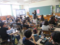 本校では、子どもたちが自らの学びを実感し、自ら学びへと向かう子どもたちを育てるために、授業改革に取り組んでいます。本日は3年生で国語、6年生で外国語の授業公開を行い、教職員同士で学び合う時間を設けました。3年生の国語では、「モチモチの木」の教材を使い、中心人物の性格について、これまでの学習や友達の考えを踏まえながら考えをまとめていく学習が行われました。6年生の外国語では、単元のゴールである「世界未来サミット」に向けて、発表の内容の工夫を考える授業でした。2つの授業とも、子どもたちが学習課題に向けて、自ら考え、また友達の考えに学びながら取り組む姿が見られました。全職員で共有している「めざす児童の姿」に向けて、授業改善を続けていきたいと思います。