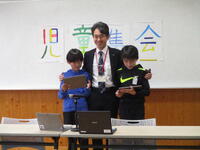 本日は、朝から児童集会が各教室をオンラインで結んで行われました。後期に入ってから、集会の前に教室を突撃で回り、インタビューする取組が行われていて、子どもたちも楽しみにしています。今回は校長室に突撃…だったようですが、校長室の電波の入りが悪く、「会議室まで一緒に来てください」とお願いがあり、委員会の子どもたちと肩を組みながら出向きました。「校長先生は、どんな仕事をしているんですか?」と尋ねられたので、「みんなが安心して、そして笑顔で生活できる学校になるにはどうすればよいかを考える仕事をしています。」と答えました。「次に、校長先生のやりがいは何ですか?」と尋ねられた時は、何と伝えればよいか考えました。そして、「中部小のみんなが笑顔で生活している姿を見ると、やりがいが湧いてきます。」と伝えました。子どもたちの返事は…「頑張ってください!」でした。児童会の子どもたちが学校を盛り上げようと工夫してくれている様子を見て、心から嬉しく感じた時間でした。