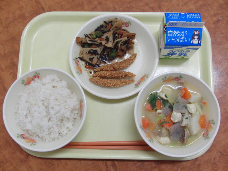 ※今日の献立は、6年生が家庭科「一食分の献立」の学習で考えたものです。各学級でグループごとに献立を考えましたが、学級から一つずつ給食で提供されます。