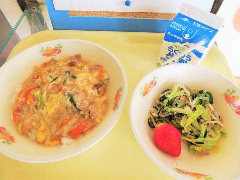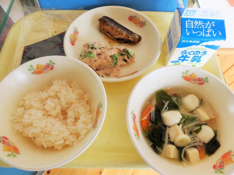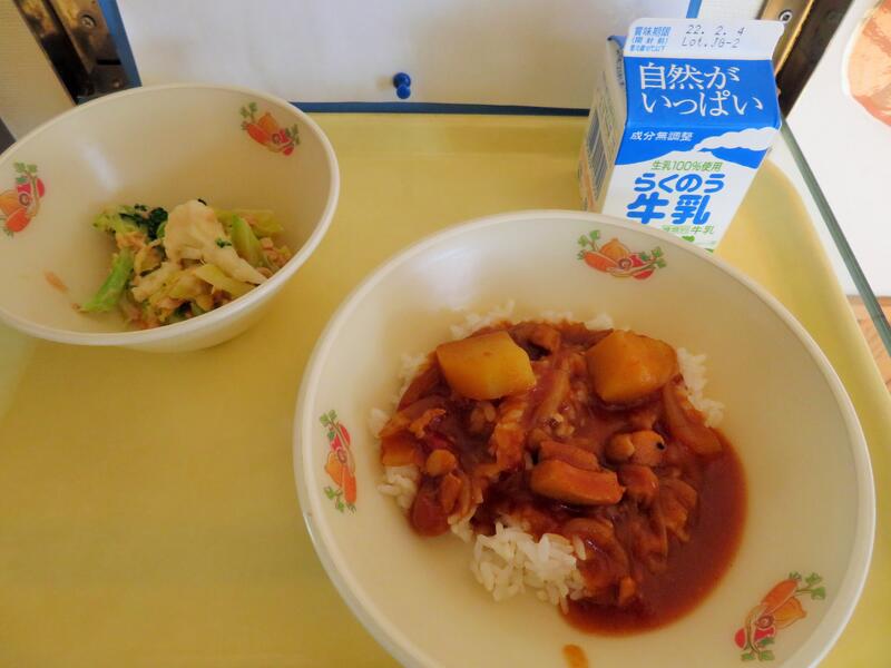 「野菜が苦手」とか、「茎ワカメが苦手」などの声も時々聞きますが、「サラダが好き」、「野菜がおいしい」という声のほうが圧倒的に増えてきました。後期後半になり、残滓がかなり減り、ほとんどなくなりました。食べる時間が増えたことも大きな理由のひとつだと思いますが、嫌いな食べ物が食べられるようになったり、少量しか食べられなかった人がもりもり食べられるようになったりしくれていたらいいなぁ~と思っています。今日のサラダもねり梅の酸味と風味がマヨネーズとマッチして、野菜をおいしくしてくれていますよ!残さず食べましょうね!