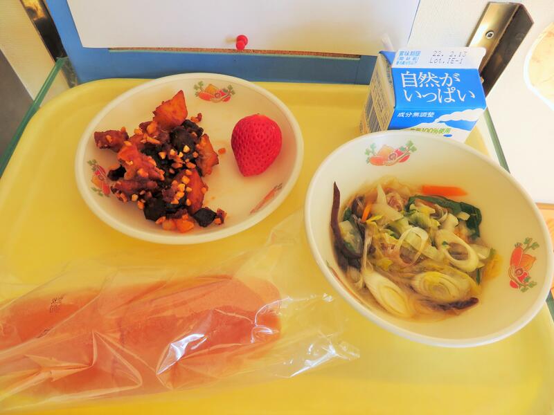 「野菜が苦手」とか、「茎ワカメが苦手」などの声も時々聞きますが、「サラダが好き」、「野菜がおいしい」という声のほうが圧倒的に増えてきました。後期後半になり、残滓がかなり減り、ほとんどなくなりました。食べる時間が増えたことも大きな理由のひとつだと思いますが、嫌いな食べ物が食べられるようになったり、少量しか食べられなかった人がもりもり食べられるようになったりしくれていたらいいなぁ~と思っています。今日のサラダもねり梅の酸味と風味がマヨネーズとマッチして、野菜をおいしくしてくれていますよ!残さず食べましょうね!