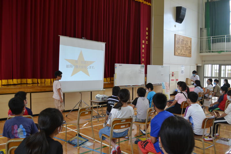 そんな状況の中でも、6年生の子どもたちは、元気いっぱい授業に参加していました。内容は、「資料の使い方」でこれまで学んだ、平均値や最大値、最小値、階級、度数などを使って、2つの紙ヒコーキの飛行記録を見ながらがどちらが遠くに飛ぶかを想定するというものでした。データを元に考えをまとめ、活用していけるようになるのがねらいの単元です。基本的な用語を使いながら、お友だちと議論する姿は大したものでした。