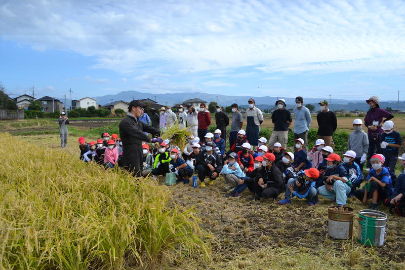 昔なら、まだまだいろんな工程があったのですが、現代はコンバインであっという間に終わります。古い人間から見るとすこしさみしいのですが、現代の子どもたちにとっては驚きの工程ばかりでした。子どもたちは、収穫することの喜びを体験し、笑顔がいっぱいでした。これからもこのような体験をたくさん積ませたいものです。