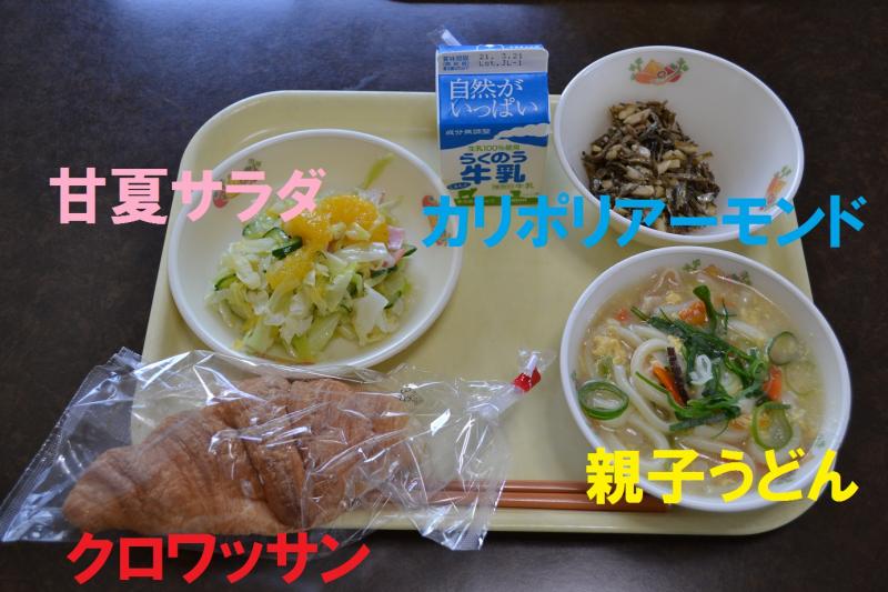 今日(3/10)の給食は、クロワッサン、親子うどん、カリポリアーモンド、甘夏サラダ、牛乳でした。カリポリアーモンドは、カリカリに炒めたいりことアーモンドを甘めのタレでからめて作ってありました。食感も味もとてもよかったです。いりこには、豊富なカルシウム、鉄分、ビタミン、DHA,EPAと体にうれしい成分がたくさん含まれています。アーモンドは、体内で合成できない不飽和脂肪酸が多く含まれています。特に「オレイン酸」が豊富で悪玉コレステロールを下げる効果があります。3つのおかずのうちの1つですが、子どもたちの健康を考え工夫されたメニューです。親子うどんのスープのおいしさ、甘夏サラダのドレッシングの工夫など、調理員さんたちの智慧と愛情を感じました。