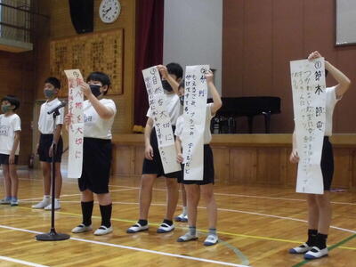 などです。今回、各学級の発表はどれもすばらしく、これまでより、もっと自分の生活と結び付けた意見や語りが多かったように思いました。「相手を知らないこと」が様々な差別や偏見を生みかねません。「決めつけ」をせず、本当のことを知り、正しい判断力を身に付けること、そして相手のことをよく知ることが大切だと、多くの子供たちが意見や感想として出してくれました。なお、お互いに顔の見えない関係であると人は攻撃的になりやすいと言われています(SNSでの、匿名での投稿など)。ネットの世界でも、相手のことを想像しながらコミュニケーションを図ることができる子供たちになってほしいと心から願っています。