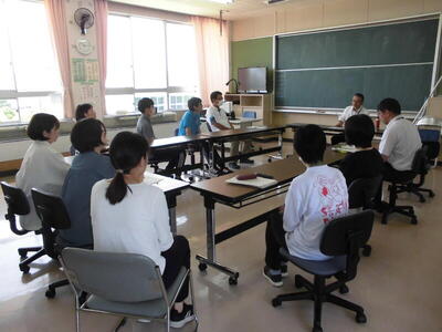 4年生の社会科の単元のまとめのために、県の防災教育支援事業に応募したところ、モデル授業実施校として授業をしていただけることになりました。25日(月)の5、6時間目に指導に来てくださったのは、「NPO法人防災WEST」の西村さん、中田さん、早田さん。皆さん気象予報士や防災ヘリのパイロット、防災士として活躍されています。「まさかのときのために、自分でしっかり考えることが目的」というワークショップに、4年生が全力で取り組みました。授業の導入時は、「けっこう難しい内容かな」と心配したのですが、杞憂でした!子供たちは自分の考えをしっかり付箋紙に書き込み、たくさん発表してくれました。講師の西村さんは、「①地域の災害リスクを知ること」「②災害から身を守るための知識を持つこと」の大切さを強調され、実際に班で協力しながら、様々な状況に応じた行動計画を作成しました。(マイタイムラインも作成したので、ぜひ子供たちと共有されてくださいね)実際のハザードマップを活用したことから、現実味が増したようです。「子供たちすごいですね!よく意見を出してくれました」とお褒めの言葉をいただきました。本当に頼もしい限りです!