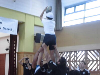 14日(金)の午後、活動をするには丁度良い曇り具合になりました。この日、南部町民センターは、いつもと違う雰囲気に包まれました。世界中にその名が知れ渡る、ニュージーランドのラグビーチーム「オールブラックスフィフティーン」の選手の皆さんと交流する機会が持てたのです!選手の皆さんはとても気さくで、笑顔で子供たちといろいろな活動をしてくださいました。子供たちは大はしゃぎで、限られた時間でしたが、輝く時間を過ごしていました。その日は新聞社やテレビ局も複数取材に来ていました。質問タイムでは、「どうすれば大きくなれますか」の質問に、「野菜をたくさん食べなさい、宿題をしっかりしなさい、早く寝なさい。そうすれば、強く賢くなれるよ!」との名アドバイスが・・・。子供たちはこの時間で、すっかりチームのファンになったと思います。テレビで「オールブラックスフィフティーン」の活躍を、興味を持って見る子供たちが増えることでしょう。
