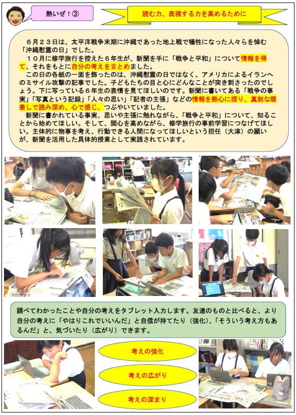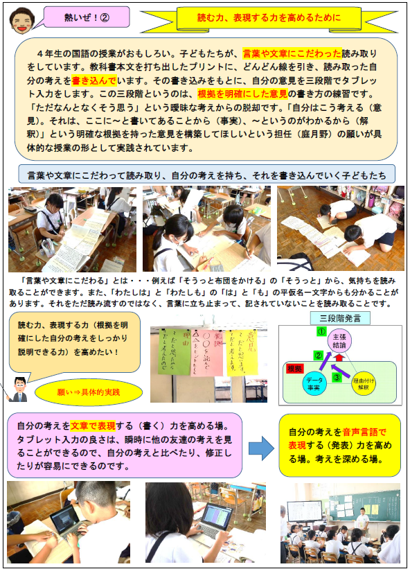 本校では、自分の考えを表現すること(書くこと、発表すること)にこだわっています。