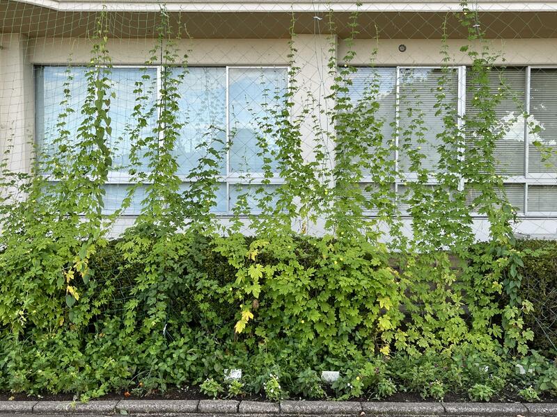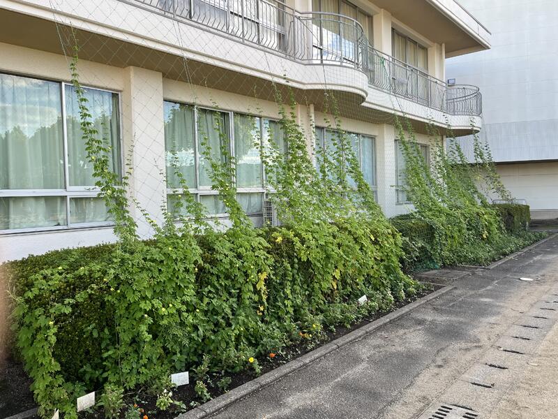 葉っぱ1枚1枚に、そうした子どもたちの思いをのせて、上へ上へと伸び行くゴーヤカーテン。