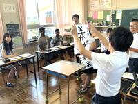 次に、5年生と習字にチャレンジ。自分の好きな言葉を筆を使って表現し、互いに交流をしました。