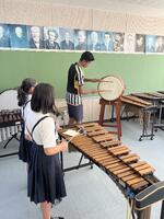 昼休みには、音楽室で鼻ぐり井手祭に向けて練習している4年生と合流し、和太鼓に興味を持って叩いていた生徒さんの姿もありました。