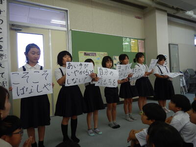 9月4日(水)は多くの方といっしょにあいさつ運動ができればと考えます。できる時間だけで構いません。保護者の方の参加も大歓迎です。是非、よろしくお願いします。