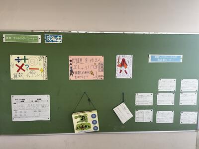現在、掲示板(算数チャレンジコーナー)には、子どもたちが考えた問題、それを受けての回答用紙、ポスターやキャラクター、イラスト入りの楽しい回答箱が並んでいます。今、まさに、子どもたちの自主活動が始まりました。「校長先生、〇〇ができました!」と活動報告を、にこにこ笑顔で、生き生きとしてくれます。そんな時に感じるのです。『あぁ、これこそ、「生きる力」だなぁ。課題解決に向けて、あらゆる方法を使って、友達と協働して動いていく。こんな力を高めた子どもたちが、将来の菊陽町、日本、そして世界を創っていってくれるにちがいない!』と。