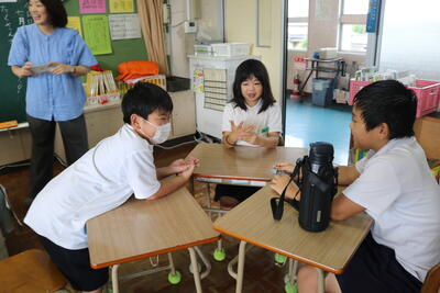 今回は、ペアで質問し合って互いの共通点を見つけ合うゲームを通して、質問することで相手のことを知る楽しさに気づかせることをねらいとしました。