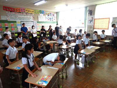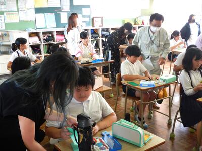 最初は緊張していたものの、次第に小学生の目線に高さを合わせて話したり、一緒に遊んだり、授業の支援をやさしく行ってくれました。