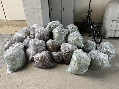その美しい光景を見られるのは、本校の二人の校務支援員(春木光雄先生、佐藤浩明先生)の活躍があってのものです。毎日、毎日、美しい環境づくりに励まれています。下の写真は、一日で刈り取られたり、集められた草や落ち葉です。だからこそ、子どもたちは、美しく整えられた運動場や花壇や校舎の中で、おもいっきり遊んだり、学習したりできるのです。