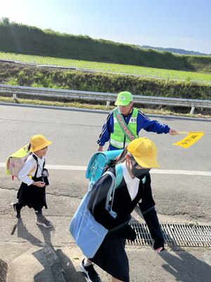 森田様は、毎朝登校班と一緒に歩いて来られ、出会う子どもたちすべてに「おはよう。」