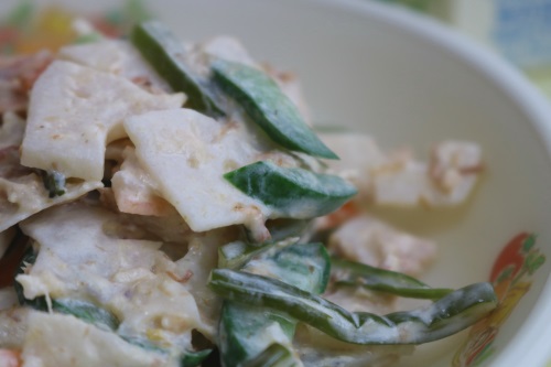 ほんのり梅味が、よくマヨネーズに合って、食感豊かなサラダの完成である。