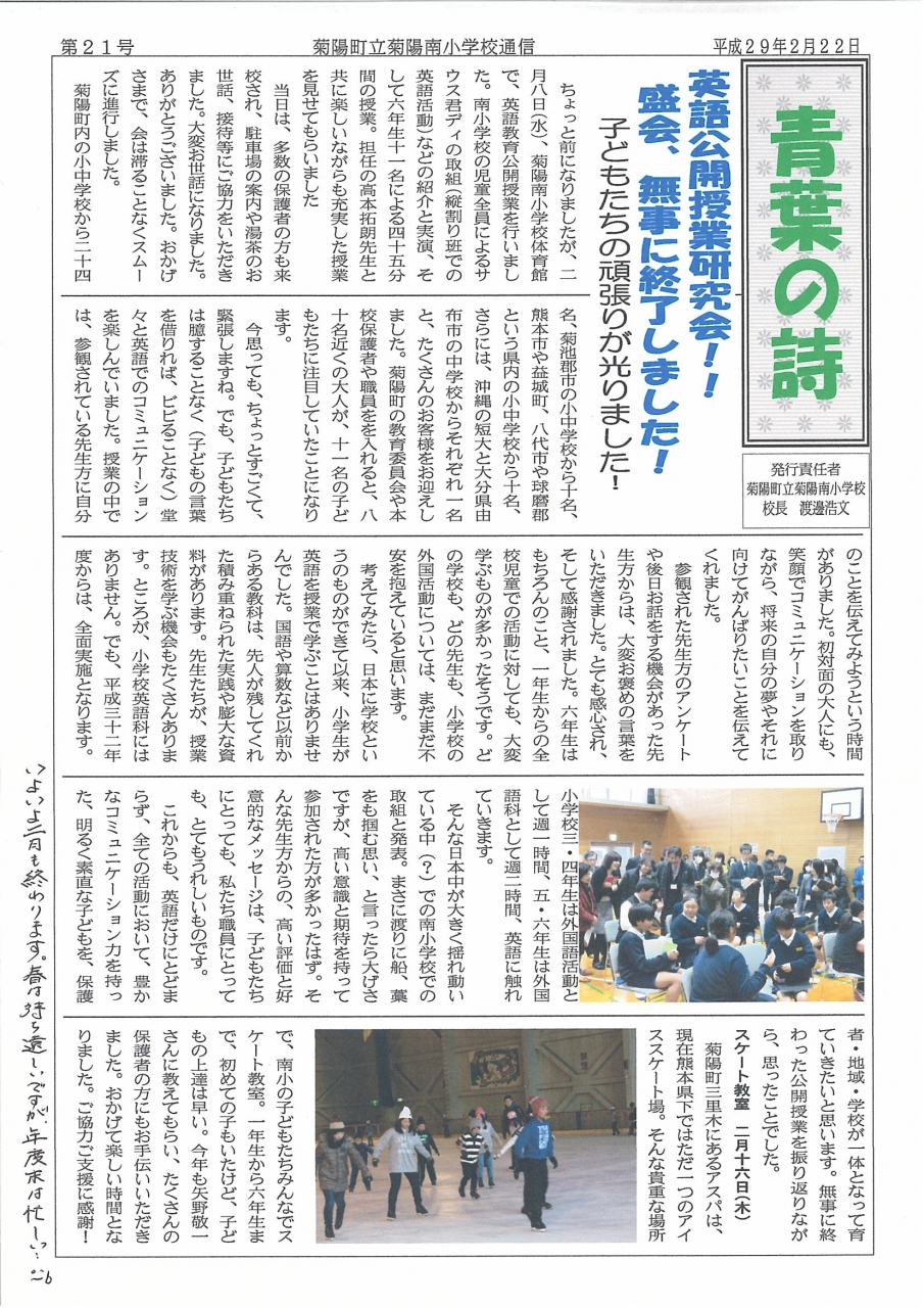 学校通信「青葉の詩」 第21号 投稿日時 : 2017/02/28 学校サイト管理者 平成29年2月22日発行 第21号 Tweet {{options.likeCount}} {{options.likeCount}} 0 コメント