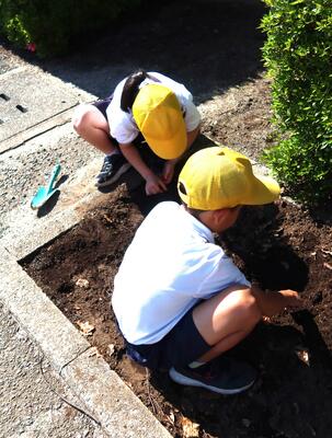 天まで届け!ゴーヤカーテン~ 4年生の苗植え~