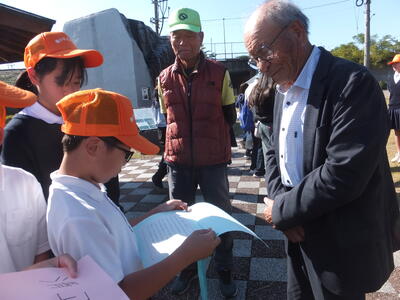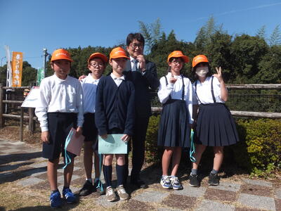 最後に5・6年生によるボランティアガイド。訪れた大人の方々(町長様をはじめたくさんの方々)に、鼻ぐり井手の歴史や魅力を堂々と説明することができました。