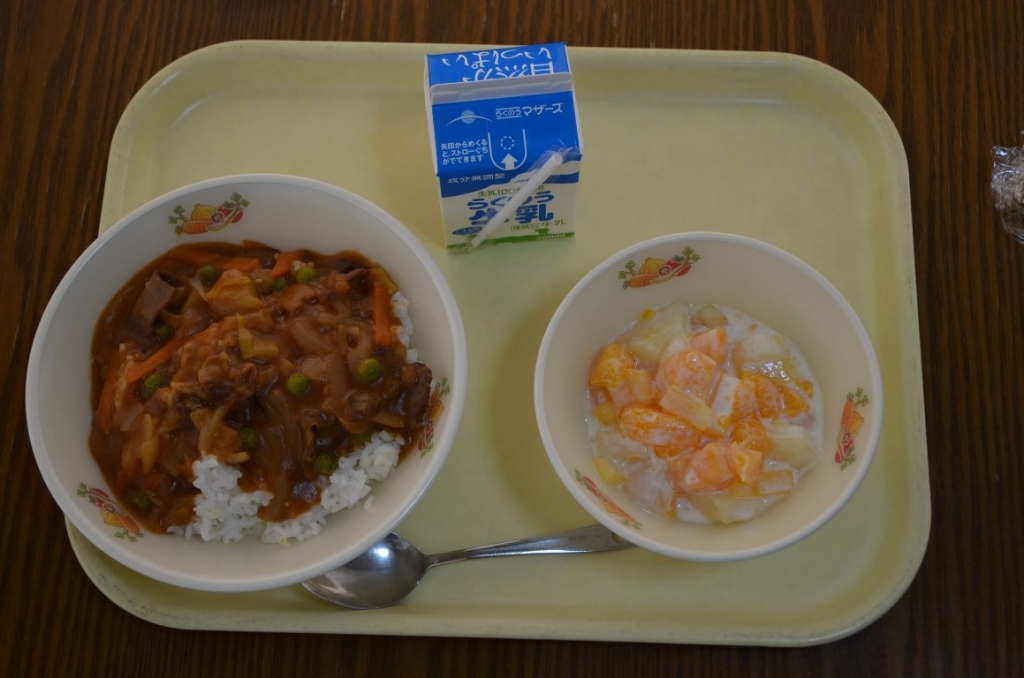 4月25日(土) 授業参観の日の給食 投稿日時 : 2015/04/25 学校サイト管理者 ハヤシライス&フルーツヨーグルト和え春というより、夏を思わせる天気。冷たいフルーツヨーグルト和えが冷たくて美味しかったです。午後から、授業参観ということで、子どもが食べやすいメニューでした。 0 {{options.likeCount}} {{options.likeCount}}