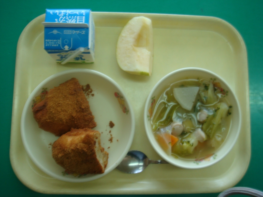 5月8日(金)揚げパン、ポトフ 投稿日時 : 2015/05/08 学校サイト管理者 今日は子どもの大好きな、揚げパンです。「食べやすいかな?」ということで、少し小さめに切ってあります。ポトフも野菜たっぷりで、スープの味もよく美味しかったです。リンゴも少し時季外れのようにも思いますが、甘くて美味しかったです。 0 {{options.likeCount}} {{options.likeCount}}