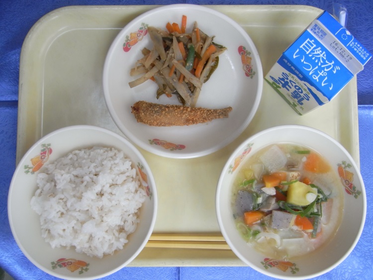 ☆薩摩汁 いわしカリカリフライ 五目きんぴら ご飯 牛乳