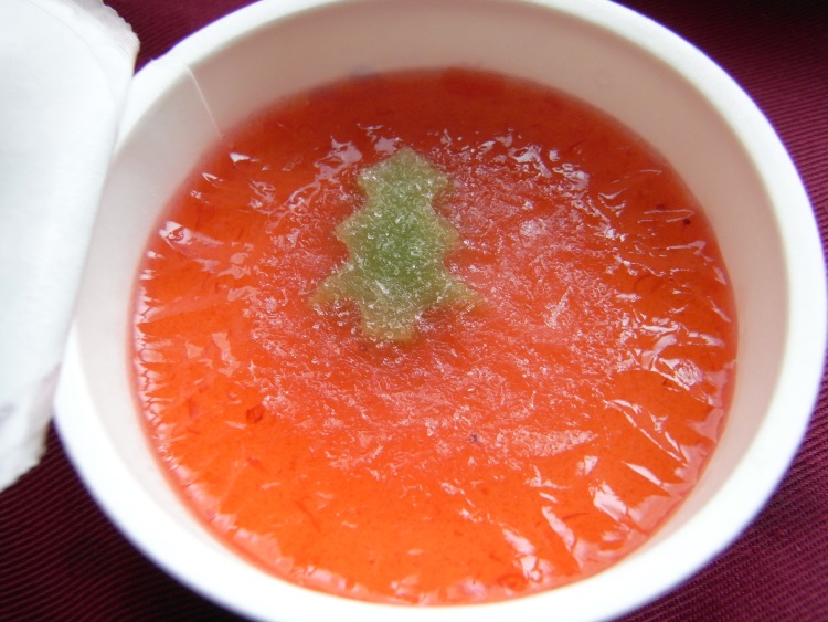 クリスマスという季節柄、デザートにはサンタの絵。ぐるっと取り巻いている10この雪だるま、