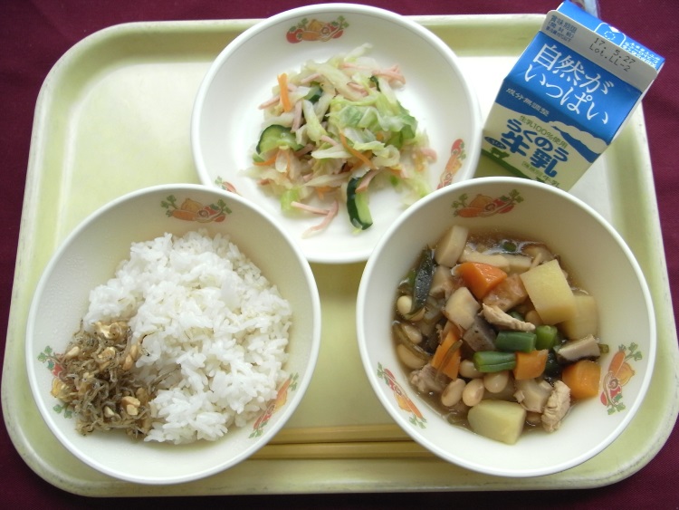 ☆大豆の磯煮 切り干しの和え物 ちりめんナッツ ご飯 牛乳