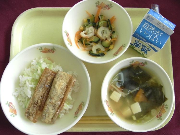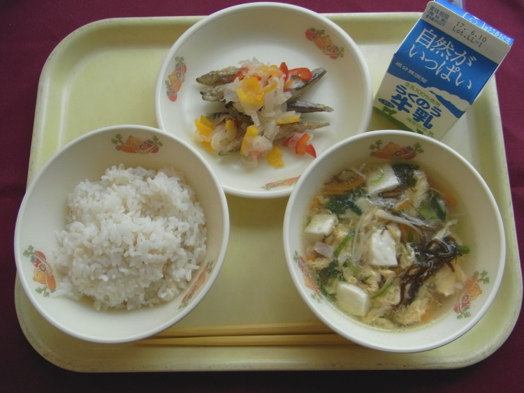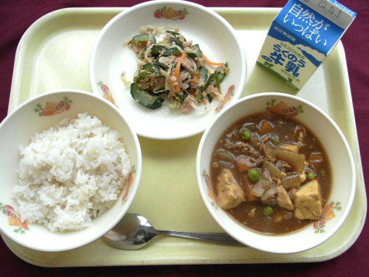 ☆カレー豆腐 ゴマ酢和え 御飯 牛乳