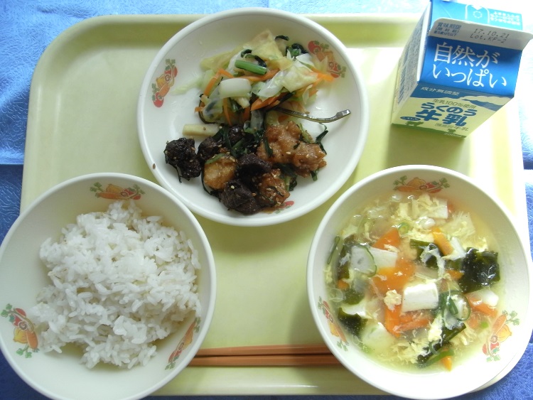 ☆かき玉汁 変わり和え 元気の出るレバー ごはん 牛乳