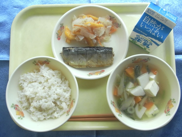 ☆サンマの塩焼き けんちん汁 柿なます ご飯 牛乳