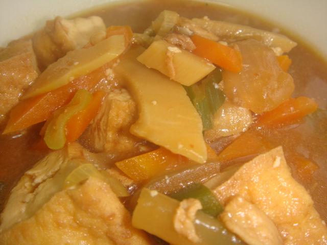 今日の給食は、わかたけじる、カツオのナッツがらめ、ご飯、牛乳でした。わかたけじるは、カツオと昆布のだしの中に、ほんのりとたけのこの香り漂うスープの中に、たけのこはもちろん、わかめ、タマネギ、ネギ、エノキ、お豆腐と具だくさんの一品でした。カツオのナッツがらめはカツオの切り身が衣をまとい、ポテト、ピーマンと共に揚げられ、最後に甘辛いたれとナッツを絡めたものでした。ご飯のおかずにぴったりでした。