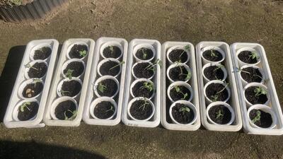 他校の先生からヒョウタンの苗をいただきました。学校で育っているヒョウタンを加えてヒョウタン棚に植え替えていきます。