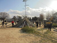1月11日(日)、「どんどや」「いいハートデー」が開催されました。前日は、地域の方々およびPTA伝統委員会の皆さまのご協力で、とても立派な「どんどや」が完成しました。ありがとうございました。また、当日は、風の強さが心配されましたが、無事に「どんどや」とマルシェ、ワークショップを開催することができました。児童も満足いく時間を過ごすことができました。地域の伝統に触れ、学ぶ時間、楽しい時間をつくっていただいた方々に、心より感謝申し上げます。