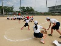 1・6年生は菊陽西小の運動場に分かれて体を動かし遊びました。