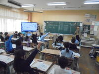 1月のある学級の算数の時間です。学校全体で今年取り組んだことは、話を聞く力の育成です。しばらく様子を見ていたのですが、先生の話をしっかりと聞き、考えたことを発言する姿が見られました。「話を聞くことができる」ということは、聞いた後に自分の考えを表現することにつながります。そのことがしっかりとできていました。子どもたちの成長を感じました。
