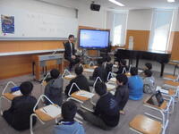 1月19日・21日に菊陽町図書館主催で、6年生を対象とした演奏家派遣事業が開催されました。6年生の各学級の授業で、サクソフォン奏者の西口新一郎さんが来校され、音楽室にて演奏会形式で実施されました。じっくりと聞く場面や演奏から情景を想像したり、児童がリコーダーを使ってセッションをしたりと、盛りだくさんの演奏会でした。音楽への興味・関心が高まった時間でした。