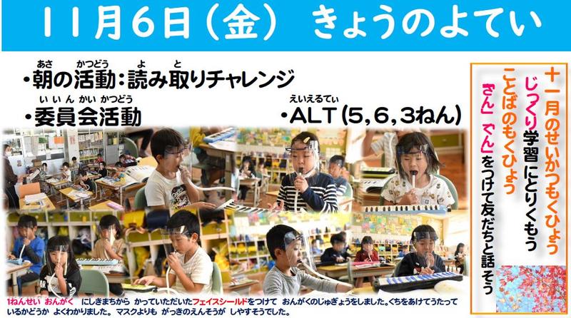 各教室で校長先生のお話をききました。