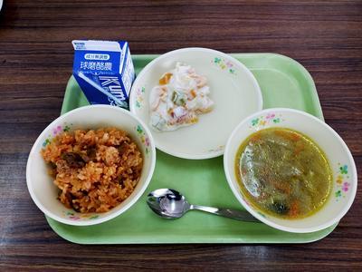 11月18日(水)キムチチャーハン、鶏肉のマスタード焼き、コーン入りたまごスープ