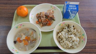 たかなめし、大根と厚揚げのそぼろに、だごじる、みかん