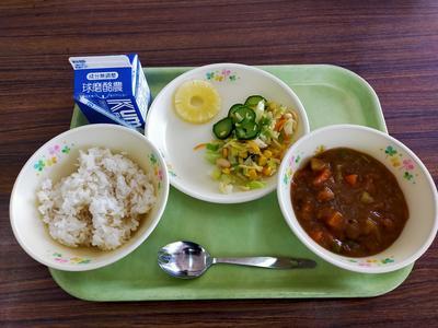 ポークカレー、麦ご飯、かみかみサラダ、パイン