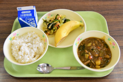 冬やさいカレー、海そうサラダ、バナナ